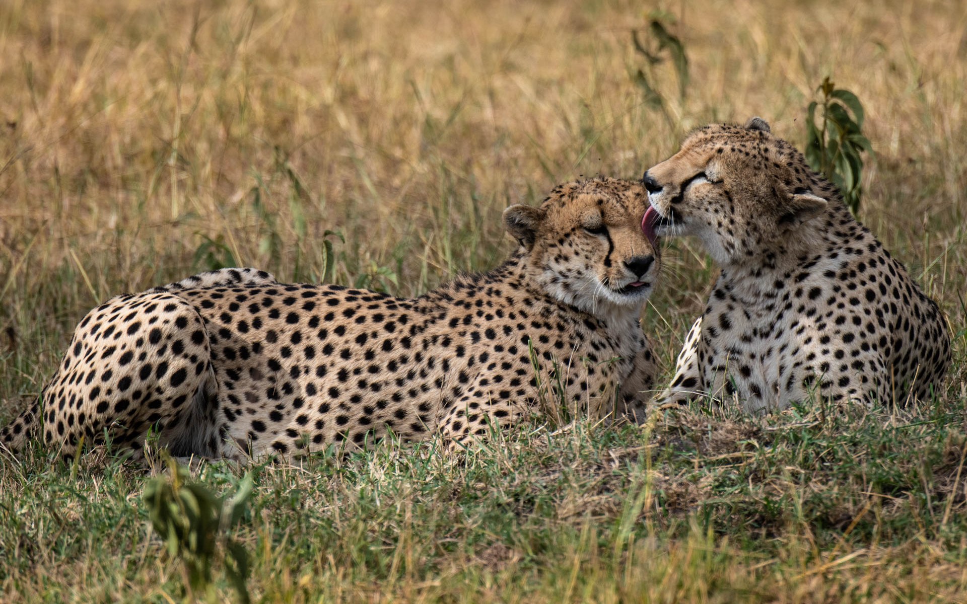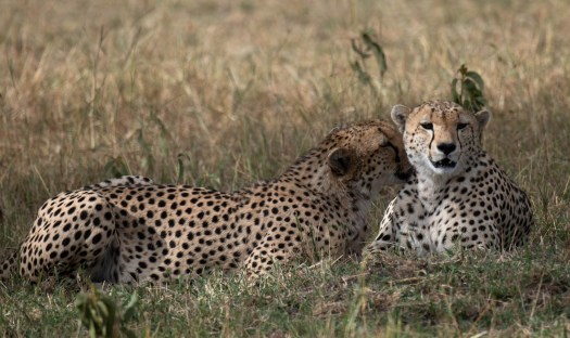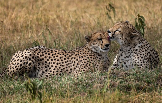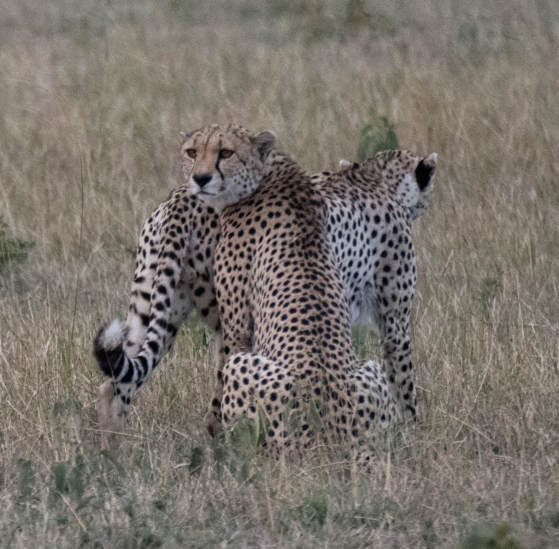 We spent one afternoon with these two cheetah brothers. Most of the time they were grooming each other or sleeping. A bit later in the afternoon – more towards sunset – they both started walking toward a herd of wildebeest that were walking some distance away.
