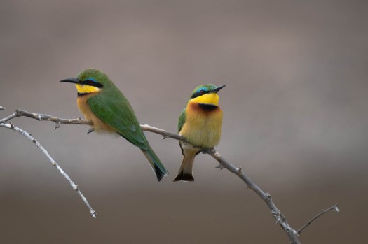 Bee-eaters will generally return to the same branch when it goes off to catch an insect. So when one of the birds left the branch, I focused on the remaining bird while our guide watched the hunting bird. When it started back to the branch he would tell me to shoot – hoping I’d get the flying bird in the shot.