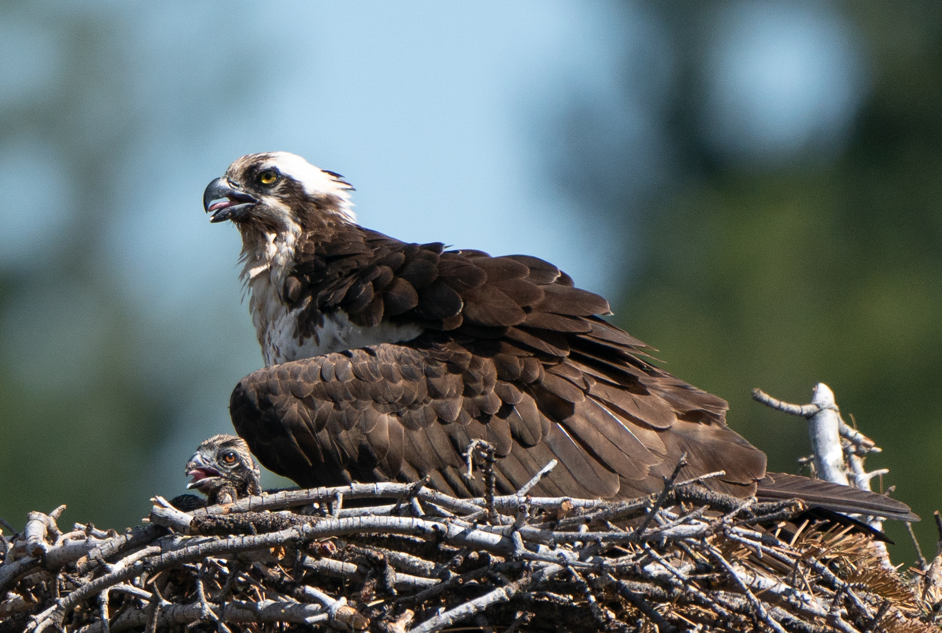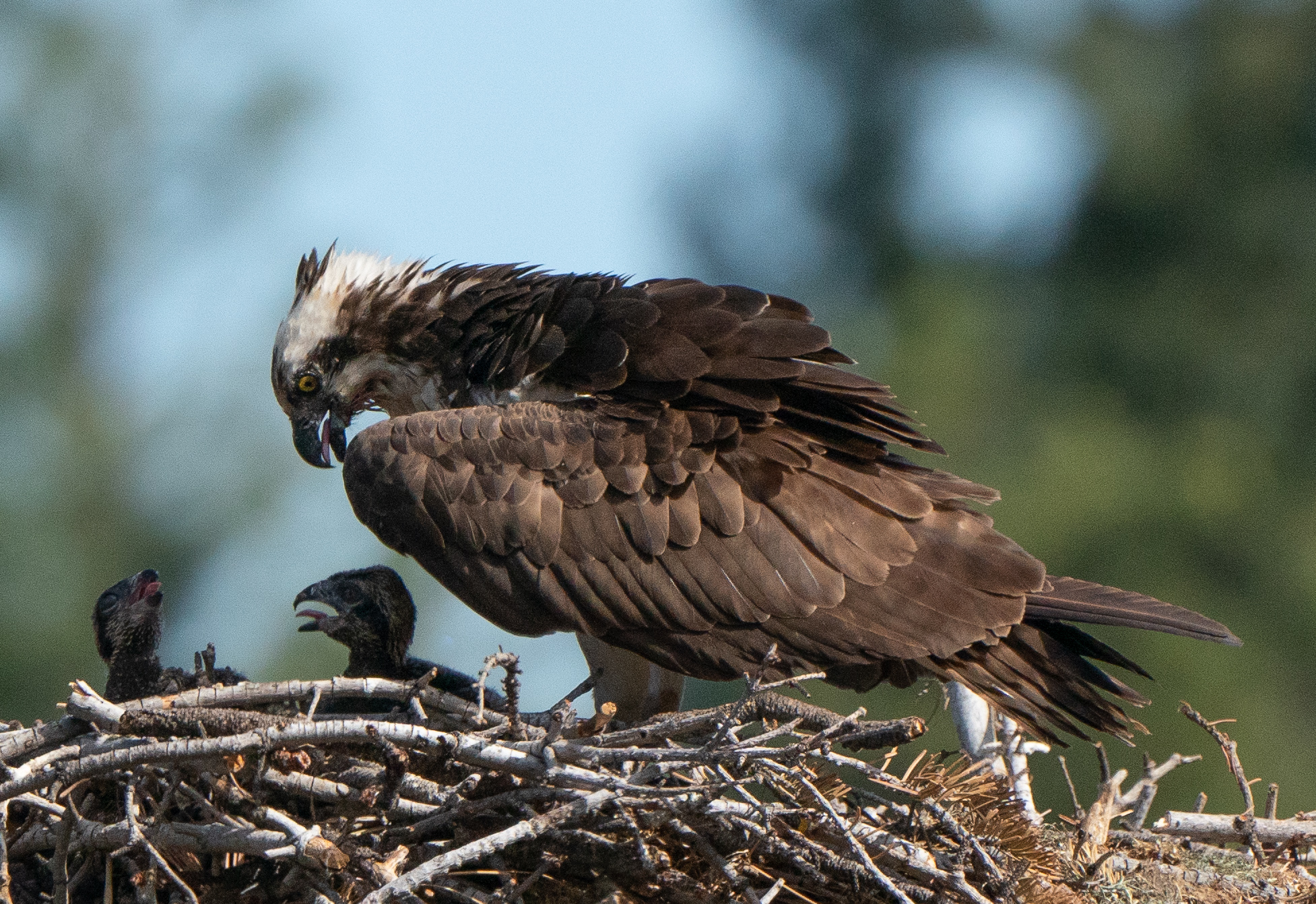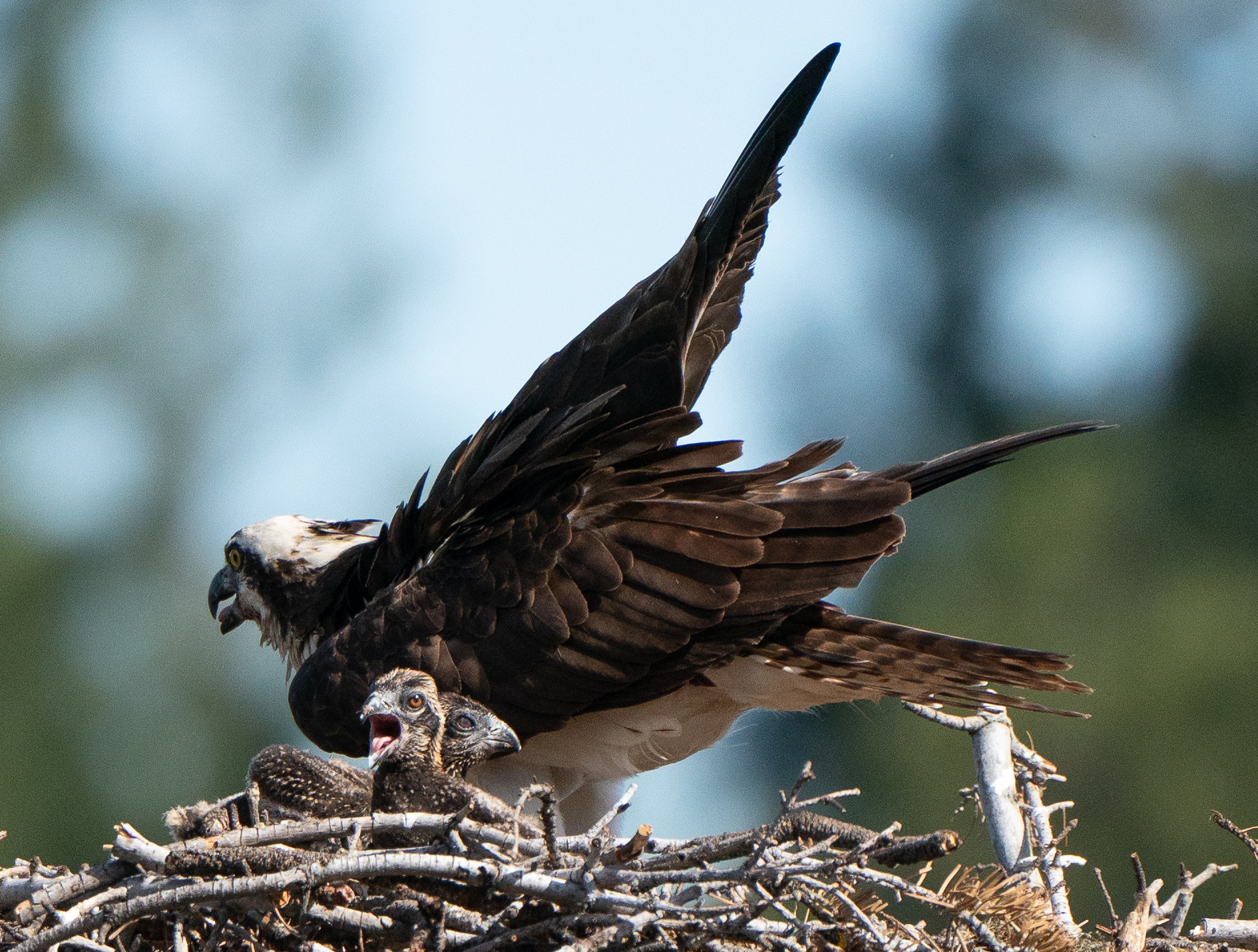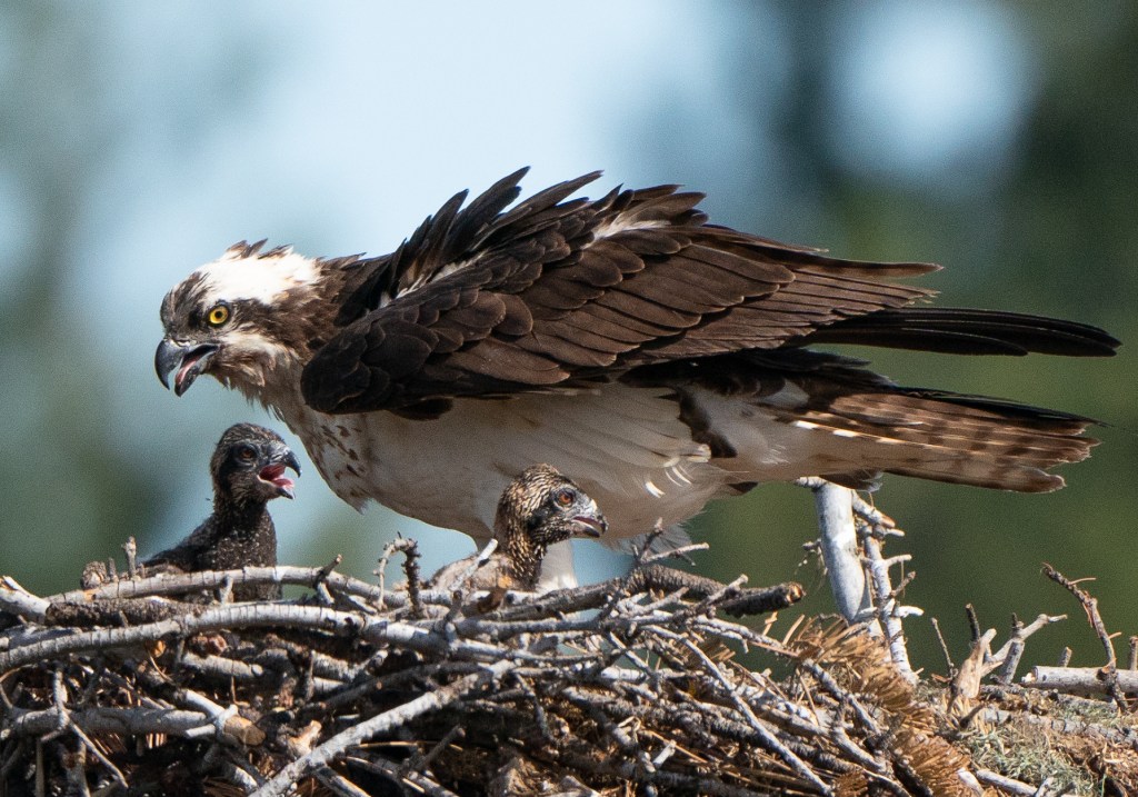 The two remaining osprey chicks are getting bigger and changing color. I read that they have a huge growth spurt between 20-30 days after hatching. So I’m thinking that in another week they should be hitting that growth spurt. Now if they can just make it through this triple digit heat wave.