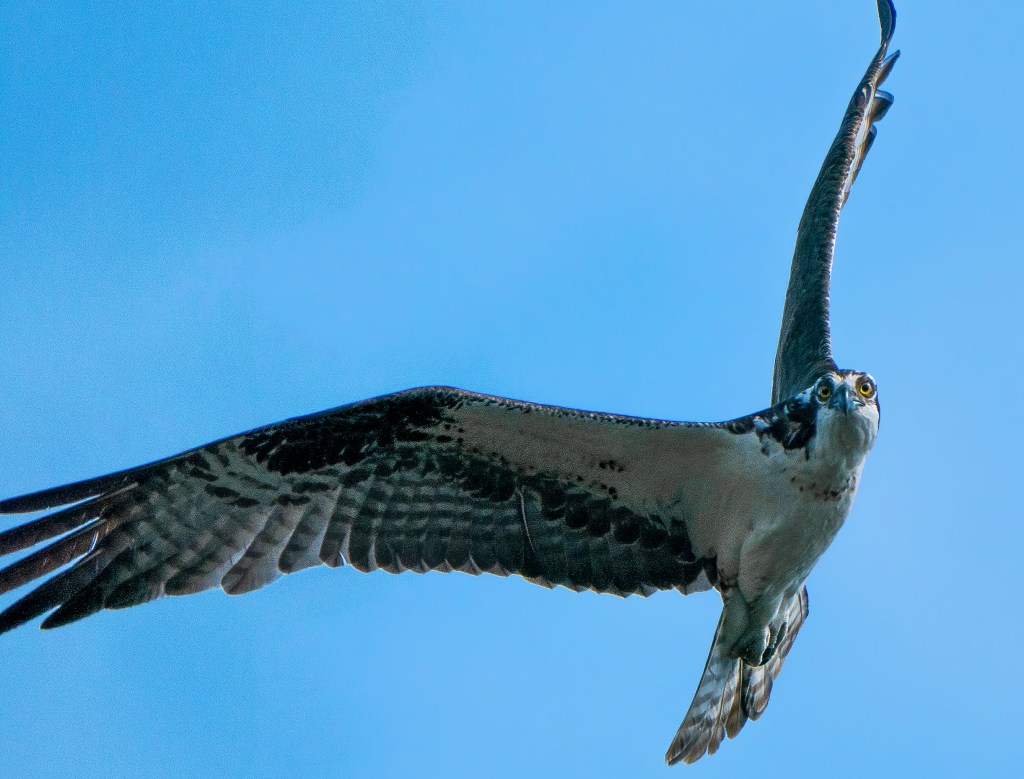 Posted on June 27, 2021 by Tuxedo Sophisticated CatOsprey in Flight Daddy osprey is staying close to the nest and making the occasional fly-by to check on his family. Rate this:Share this: Click to share on X (Opens in new window) X Click to share on Facebook (Opens in new window) Facebook Click to email a link to a friend (Opens in new window) Email Click to share on LinkedIn (Opens in new window) LinkedIn Like Loading... Related