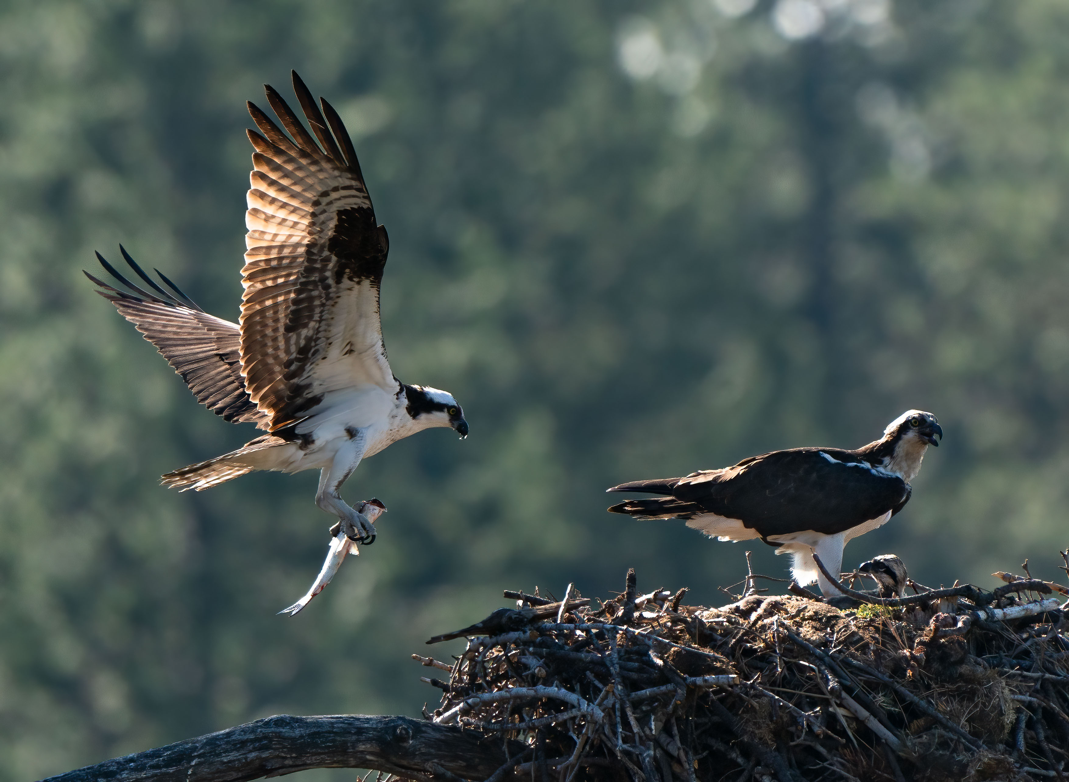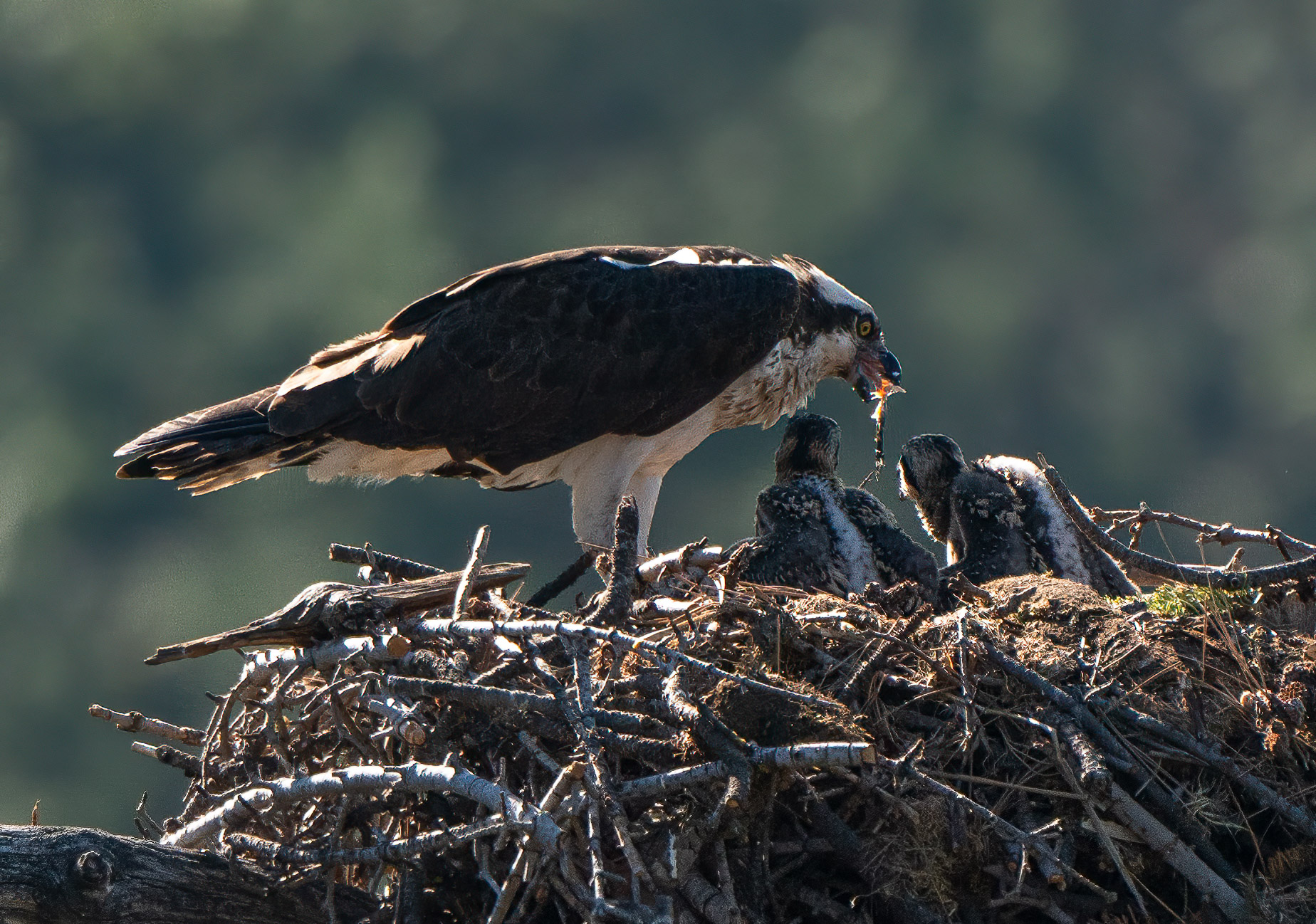 Dad brought home a nice fish for the hungry babies.