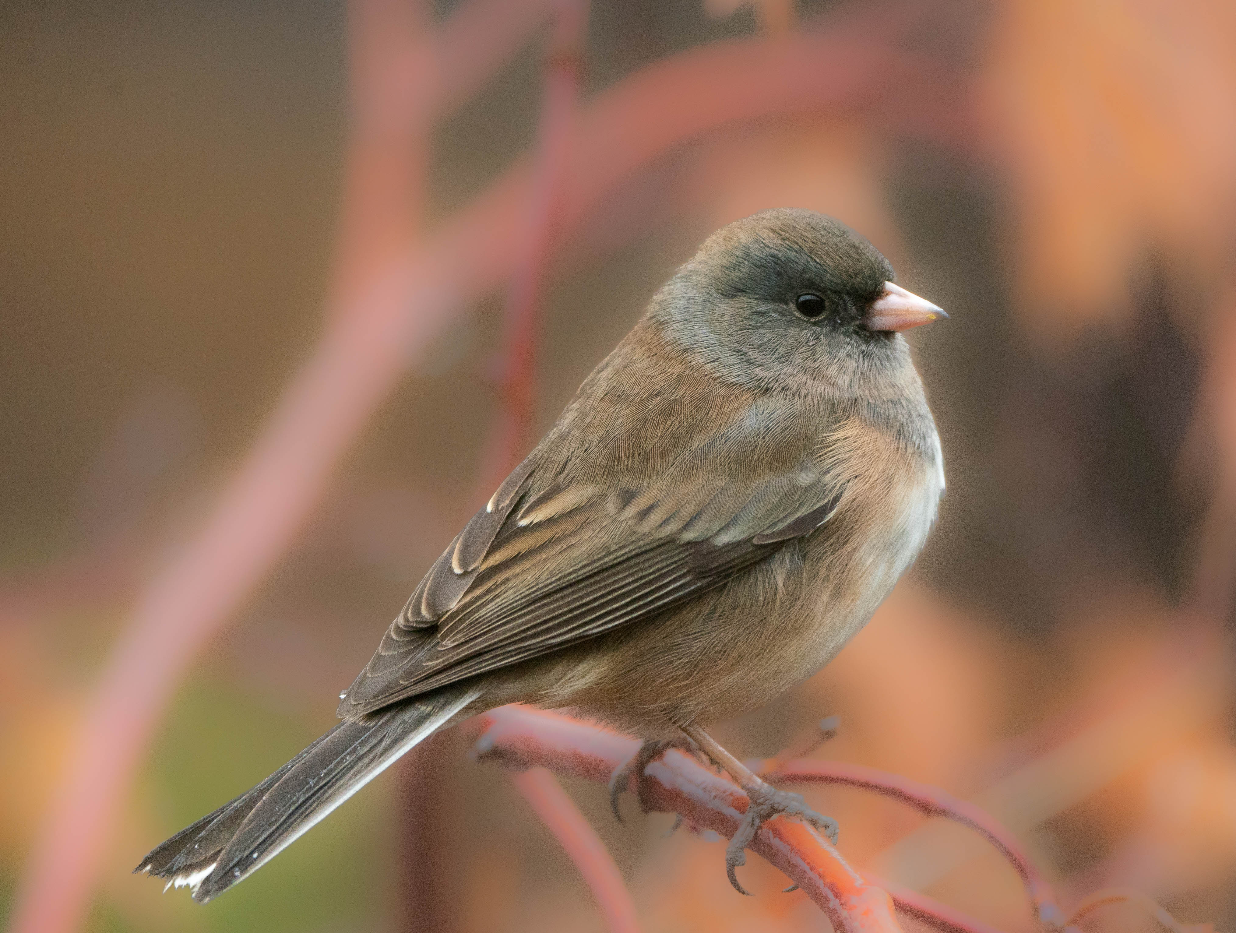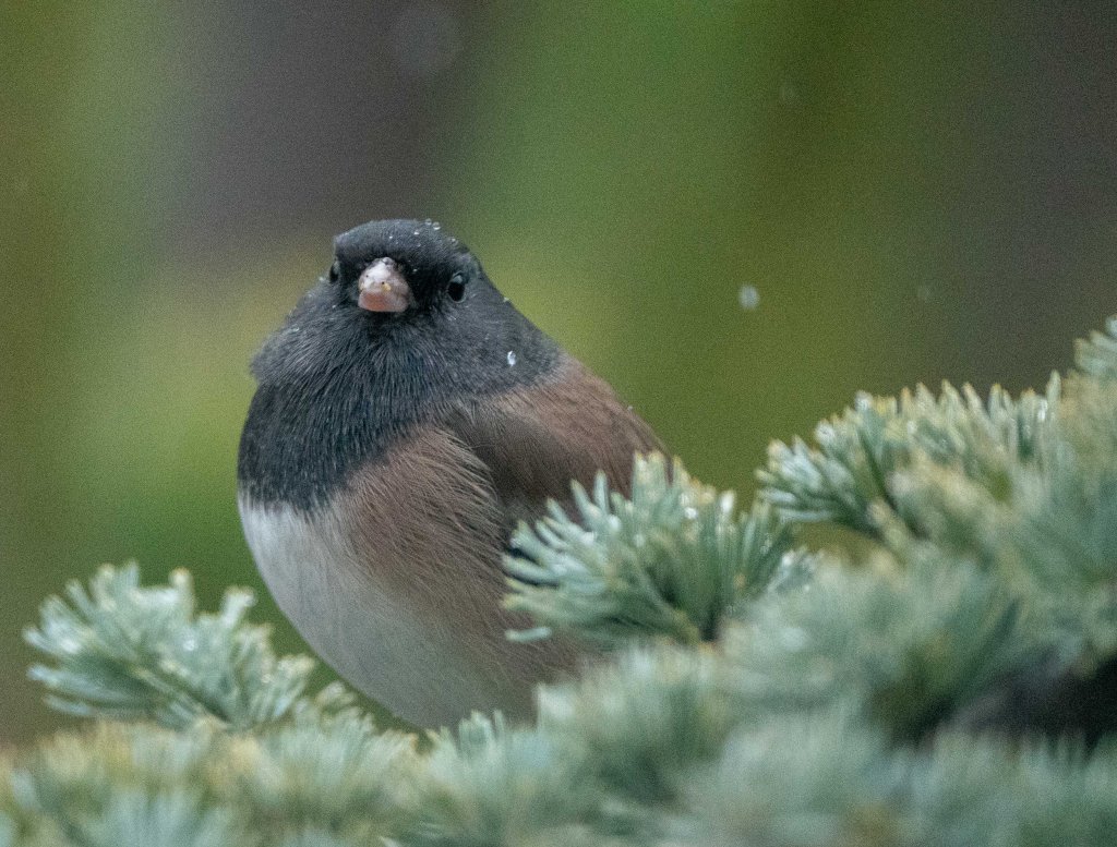 Dark-Eyed Junco (Oregon). I learned something interesting today . . . in most places the dark-eyed junco is mostly gray. But in the western part of the country, they look like this. They are one of the most common birds in North America although here we see them mostly in the winter.