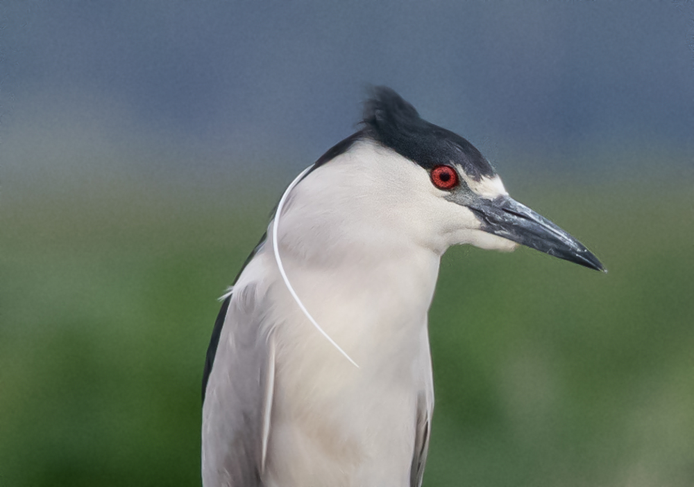 This is another black-crowned night heron that flew in and posed for us. He perched on this post, showed us different angles, and after we'd taken enough photos, he flew off. Maralee