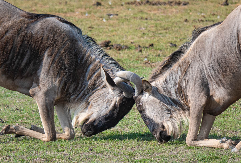 I don't know if these wildebeest were fighting or if they were just playing, but they were tussling for a while in the dirt.