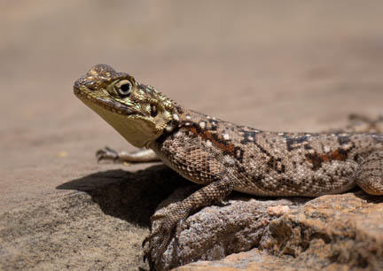 The lizards were pretty common at our lodge in Amboseli. They didn't bother us but they were visible. The Rainbow Agama was pretty shy. Ā Every time I tried to take its photo it would disappear. I finally got its head peeking over the railing which is the most colorful part of the lizard. This lizard …