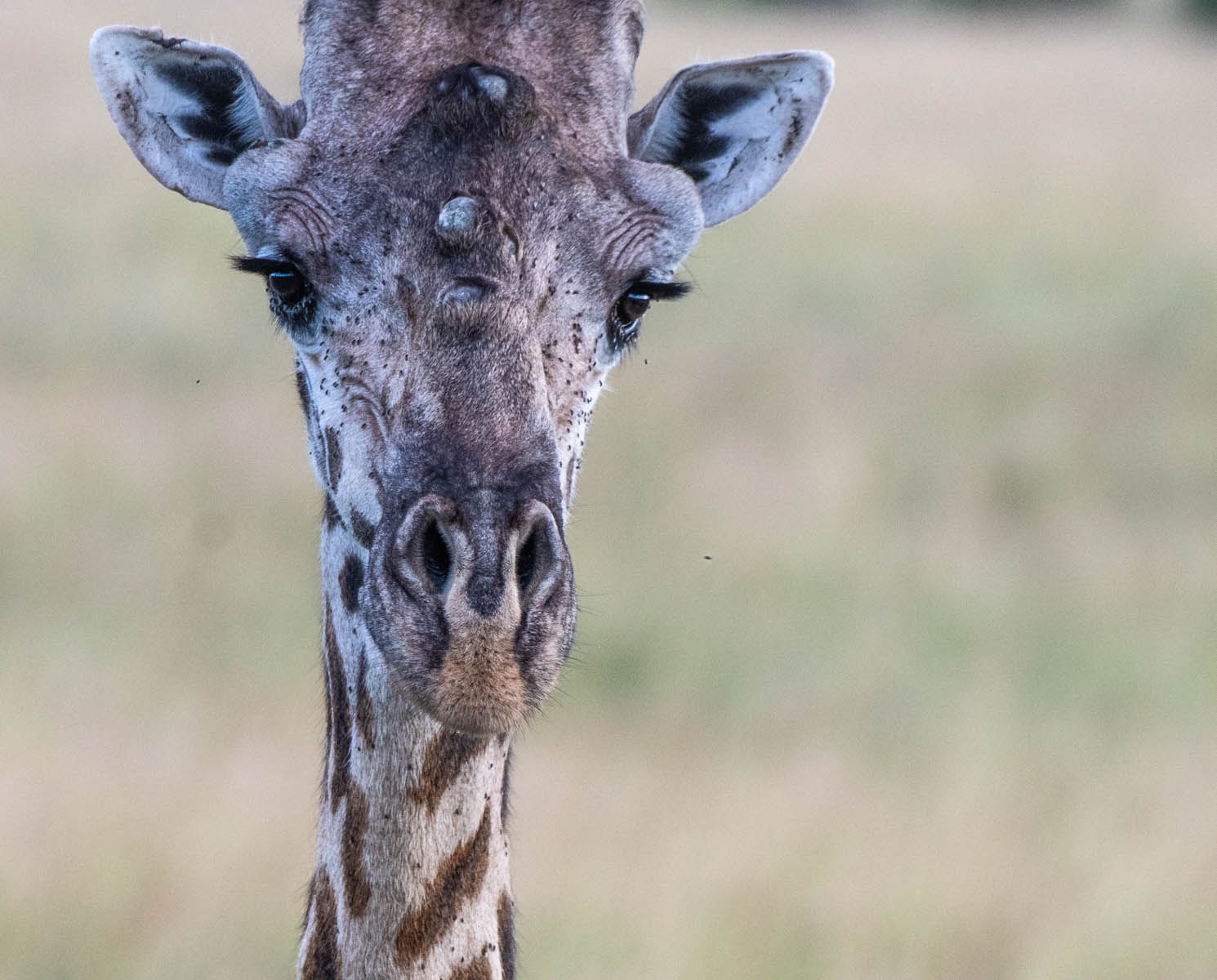 After watching our first wildebeest crossing, we ventured inland and almost immediately came across this beautiful giraffe. Hitching a ride on the giraffe's neck were a couple of oxpeckers. These pretty little birds feed on ticks and other parasites on larger African animals. It's a win-win . . . the oxpecker gets to eat and …