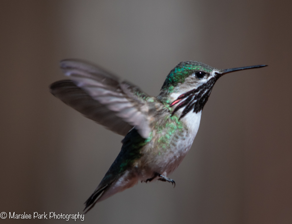 One of the hummingbirds that has been visiting my feeders. The dark streaks on its throat are actually red when the sun hits it just right. Maralee