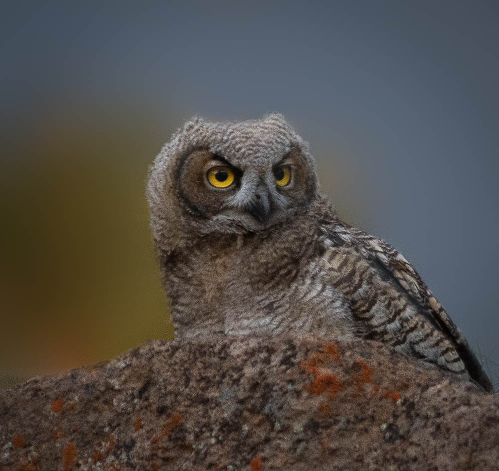 It has been a week since I last saw the owlets. I wasn't sure if they were still around or if they had left the area. I saw one of them this evening so I'm sure the other one isn't far away. This one has lost most of its fuzziness and looks very much like …